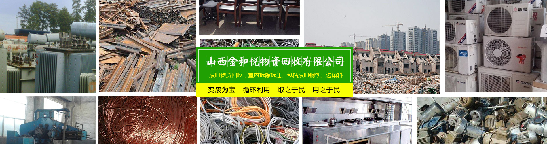 山西金和悅物資回收有限公司是一家從事廢舊物資回收,整廠設(shè)備打包回收的公司。主要可回收社會(huì)各行各業(yè)的廢舊物資,包括廢鋼廢鐵/廢銅廢鋁/稀有金屬/廢不銹鋼/廢舊機(jī)械設(shè)備/電線電纜/電池電瓶回收以及廢舊廠房整體設(shè)備打包回收。免費(fèi)上門估價(jià),現(xiàn)場(chǎng)付款,可帶工人上門,清理庫房。我公司立足于環(huán)保,利用閑置的資源,變廢為寶,循環(huán)利用,取之于民,用之于民,讓有效的資源得到合理的利用,充分體現(xiàn)它的價(jià)值。公司堅(jiān)持“以質(zhì)量求生存,以信譽(yù)求發(fā)展”的基本原則,為山西及周邊地區(qū)的企業(yè)、單位和個(gè)人提供安全、快捷的服務(wù)。歡迎各界有廢料或需要拆除的人士來電洽談業(yè)務(wù)!